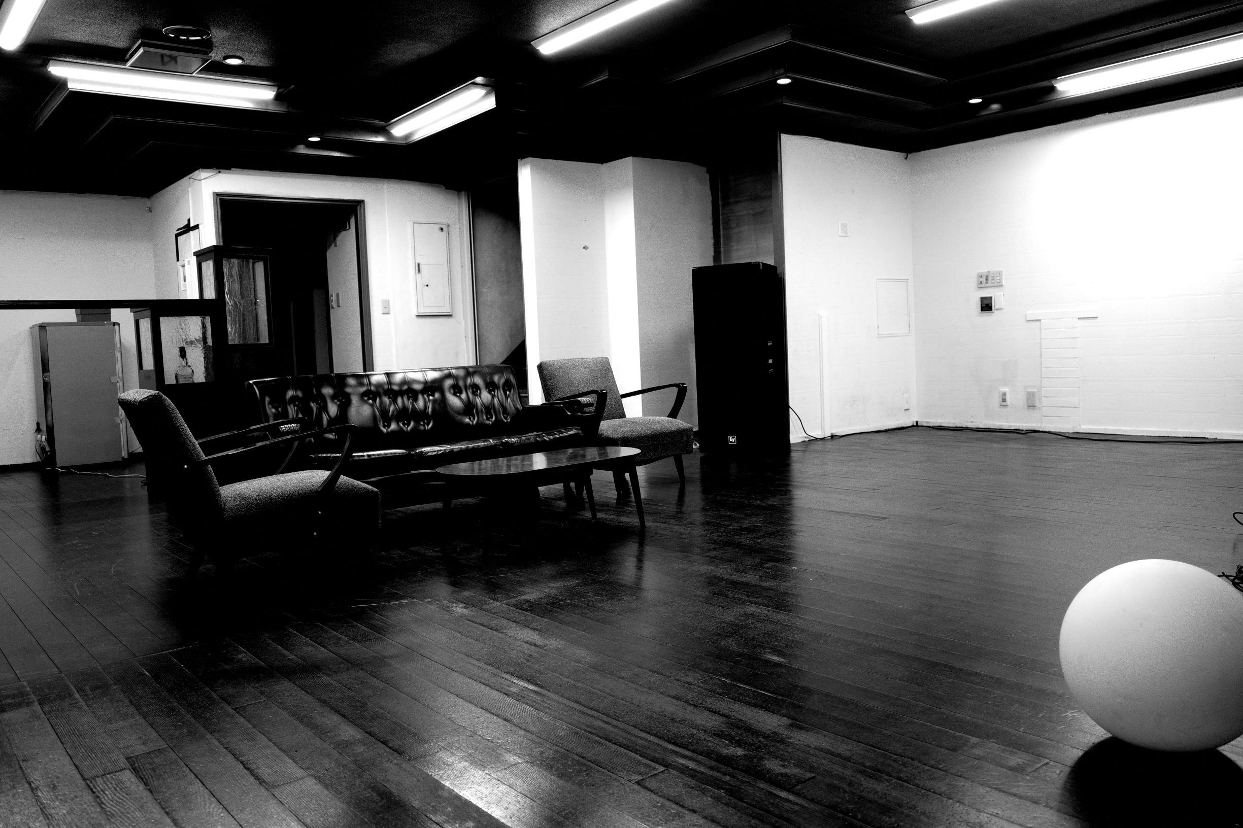 1Fにはゆったり広く、そのままラウンジとして使えそうなスペース。今はまだ、時間が止まったままの状態。まだまだこれから蘇って参りますよ。お楽しみに。